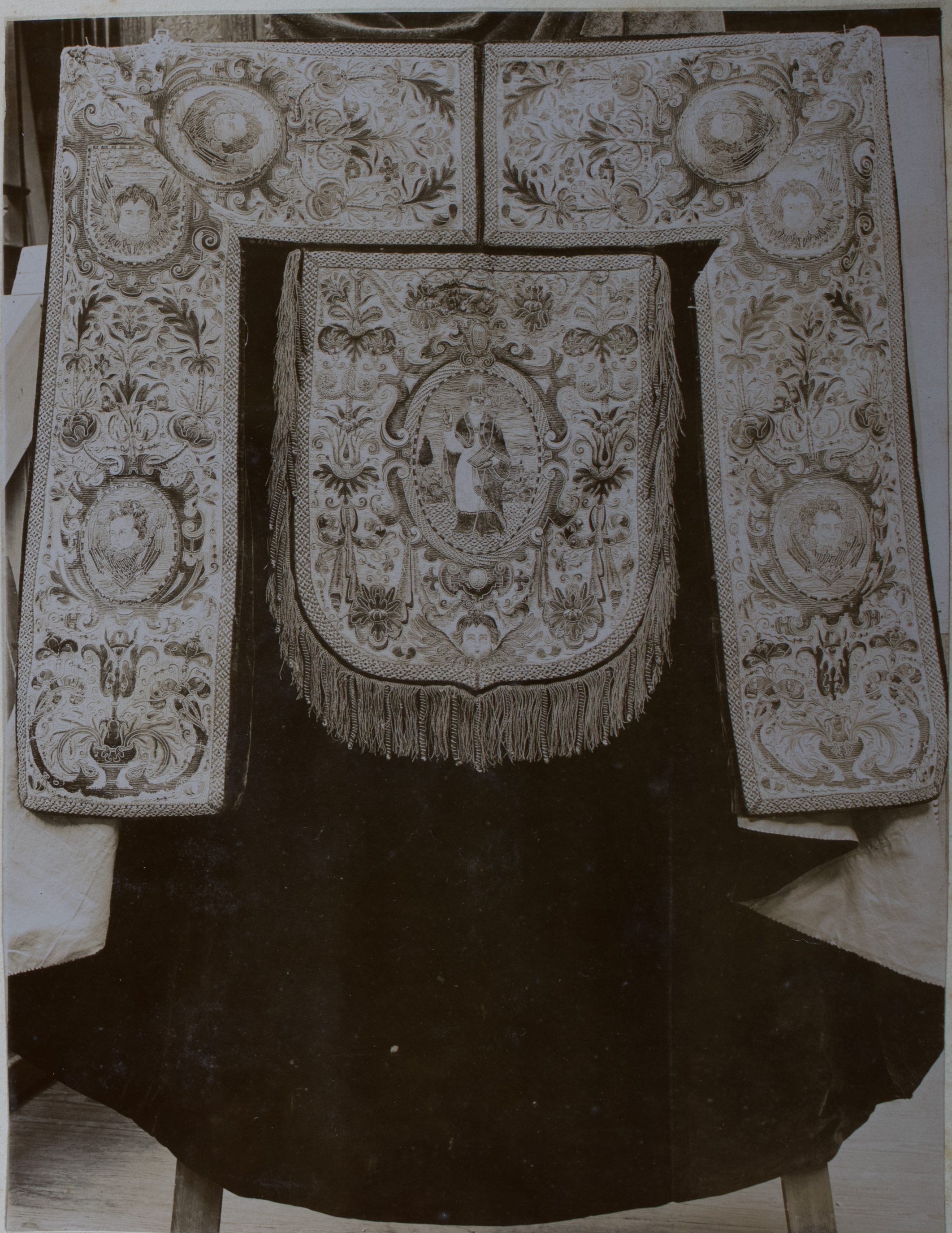 - ES Parroquia de San Lorenzo.-Berástegui. Capa pluvial negra bordada en colores y oro (1635).