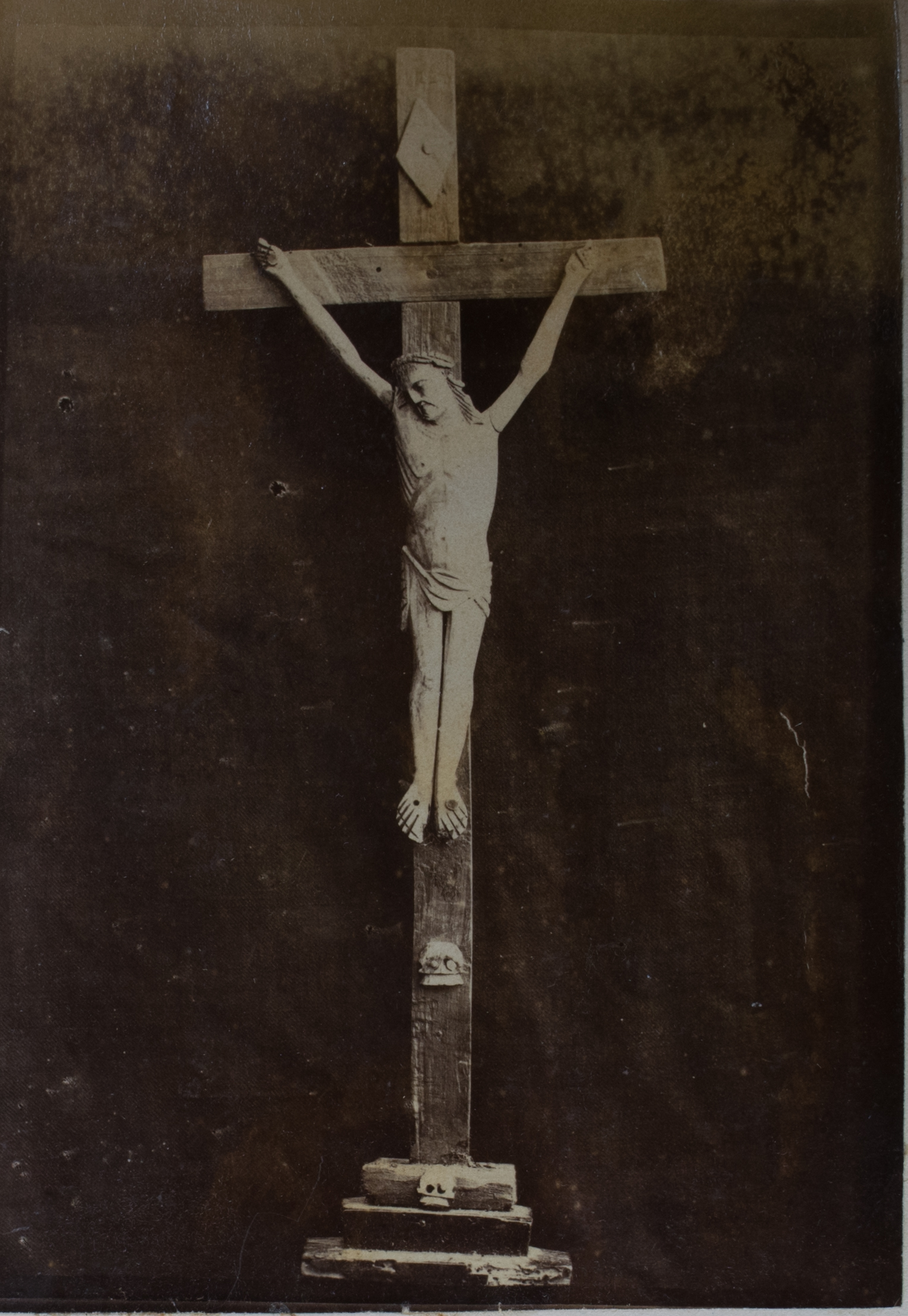 - ES Cristo arcaico tallado sobre hueso, con cuatro clavos. Viuda de Soraluce