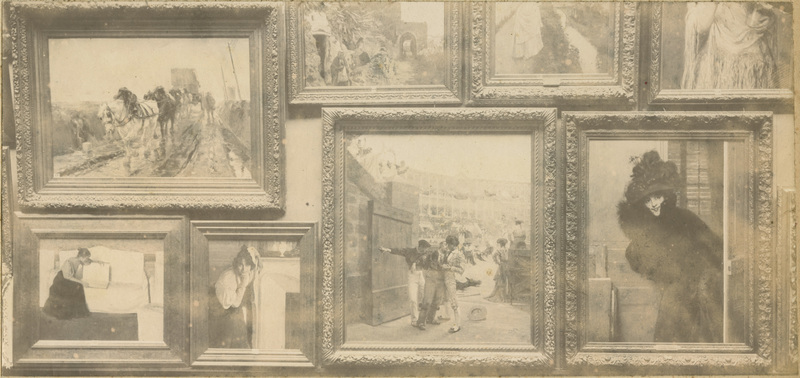 69-D. Ulpiano Checa-ren 'Le Fardier'. 173-Orange-n 'Ijituak'. 167-Melnik-en 'Saltzailea'. 158-Ricardo Madrazo y Garreta-ren 'Consuelo (lore-saltzailea)'. 201-Santiago Rusiñol-en 'Liburu bat begiratzen'. 202-Rusiñol-en 'Barrezka'. 237-Mr. Henri Zo-ren 'Zezen suharra'. 143-Mr. Gaston Linden-en 'Peut-on entrer?'.