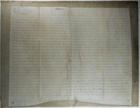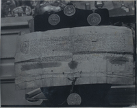 Carta puebla de fundación de Cestona. Carta puebla de fundación de Cestona por los moradores de Aizarna, dada en Segovia a 15 de septiembre de 1383 (J. C.) por el Rey Juan I (Pergamino, le falta el Sello Real de plomo pendiente)