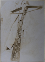 Diputación de Guipúzcoa Diputación de la M. N. y M. L. Provincia de Guipúzcoa (Excma.). Dos crucifijos de plata, con efigies doradas. Cáliz de plata sobredorada y su patena. En la base destácase, en relieve, el escudo de la Provincia y una inscripción latina en forma de lema. Dos campanillas de plata con el escudo cincelado de Guipúzcoa. Una salvadera con el mismo escudo. Un tintero con el mismo escudo. Una urna de plata lisa.
