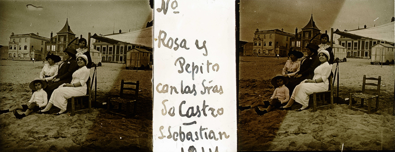 - ES Rosa y Pepito con las Sras. de Castro en la playa de la Concha