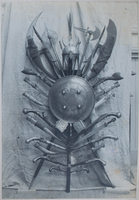 Panoplia de armas pistolas, puñales, sables, lanzas...