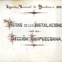 NAVE 18 SECCIÓN DE GUIPÚZCOA. En el centro de esta nave ocupa la sección Guipuzcoana una superficie de forma trapecial, limitada por sus bases ó lado paralelos, con las galerías ó paseos transversales de cuatro metros de anchura, como se vé en el plano adjunto. Este trapecio tiene la base mayor de 18'60 metros, y la menor de 12'70 metros, con una distancia de base á base, ó altura del trapecio de 25 metros; por lo tanto, comprende una superficie total de 391 metros cuadrados y 25 decímetros cuadrados; ocupada por 46 instalaciones independientes, y una general que contiene 12 más, formando un conjunto de 58 instalaciones de otros tantos expositores; de los cuales ocupan 10 uno de los lados del trapecio ó pared de la sección, 13 la otra pared; y las demás se hallan en medio, formando instalaciones aisladas, dispuestas convenientemente, bien separadas una de otra y formando calles dentro de la sección. El decorado general está convenientemente estudiado; en una de las paredes laterales, se halla en su centro la instalación del Excmo. Ayuntamiento de San Sebastián, terminada en su parte superior con el escudo de armas de la ciudad, y en la pared opuesta, frente al escudo del Ayuntamiento, se ven las armas de la Provincia con su inscripción de M, N. y M. L. Provincia de Guipúzcoa. Como el decorado de la sección se eleva en dichas paredes laterales á cinco metros de altura, se hallan forradas hasta esa línea, de felpa de lana encarnada. En los cuatro ángulos de la nave, en esta línea superior, se ven los escudos de las cabezas de partido judicial, con trofeos consistentes en banderas, colocadas, en el centro la de España, debajo la de Guipúzcoa y á los lados la de Cataluña. A ambos lados de los escudos de la Provincia y Ayuntamiento de San Sebastián, se hallan colocados, en esa línea superior, los escudos de varios pueblos de la Provincia, con trofeos consistentes en dos banderas entrelazadas, una de Guipúzcoa y otra de Cataluña. Completan este decorado general dos grandes banderas colgadas de la cubierta del Palacio y que coinciden con las entradas de la sección por las dos galerías ó paseos; estas banderas son blancas, (que es el color de la de la Provincia) y una gran inscripción de Guipúzcoa. Haremos la reseña, siguiendo el orden de instalaciones numeradas como se ven en el plano.