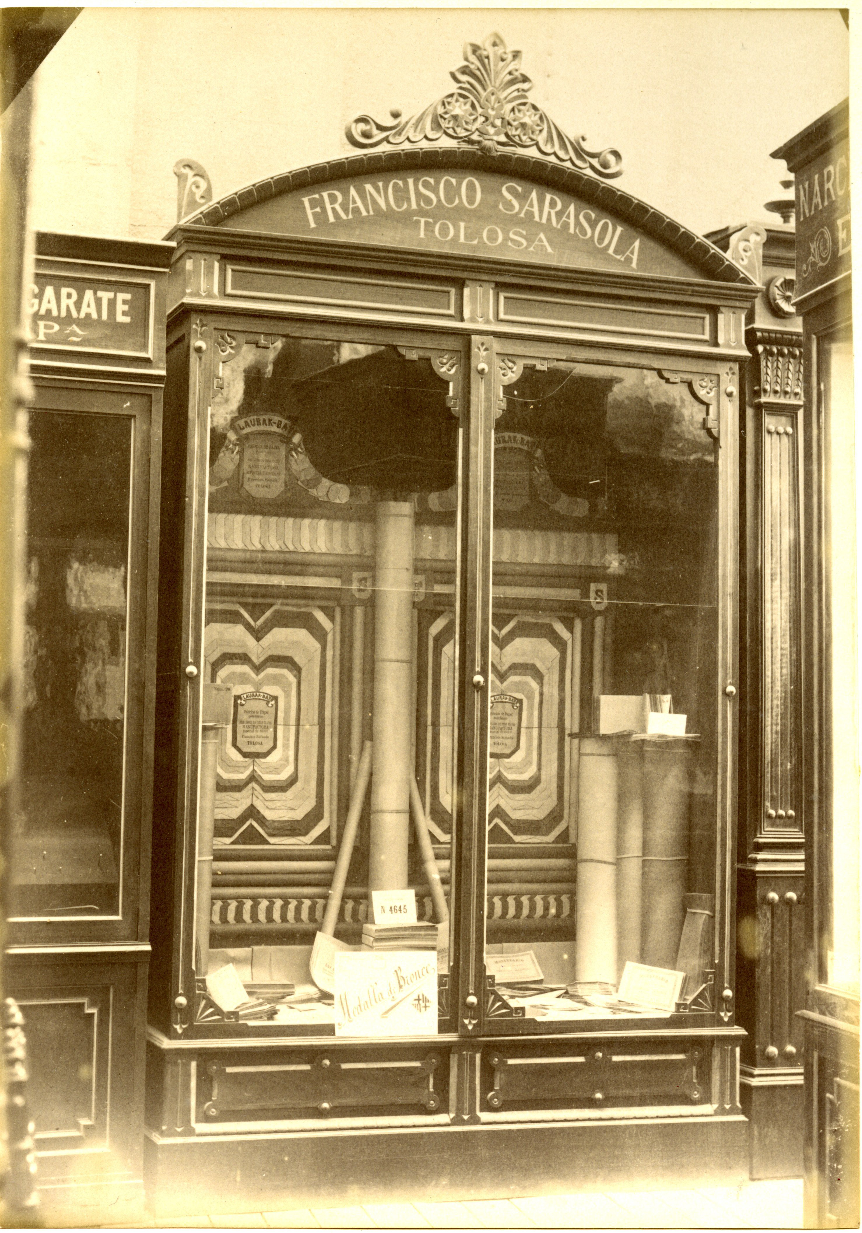 La fábrica de papel continuo Laurac-bat de D. Francisco Sarasola, de Tolosa, es una de las pocas de su clase, entre las muchas que hay en la región Tolosana de esta Provincia, que presenta sus productos en este gran certámen. Esta instalación consiste, en una elegante vitrina, en que se ve un magnífico conjunto, formando con gran variedad de colores, en diferentes clases de papel, cartón cuero, bolsas de papel, y un completo muestruario de cuantas clases se fabrican en este establecimiento industrial.