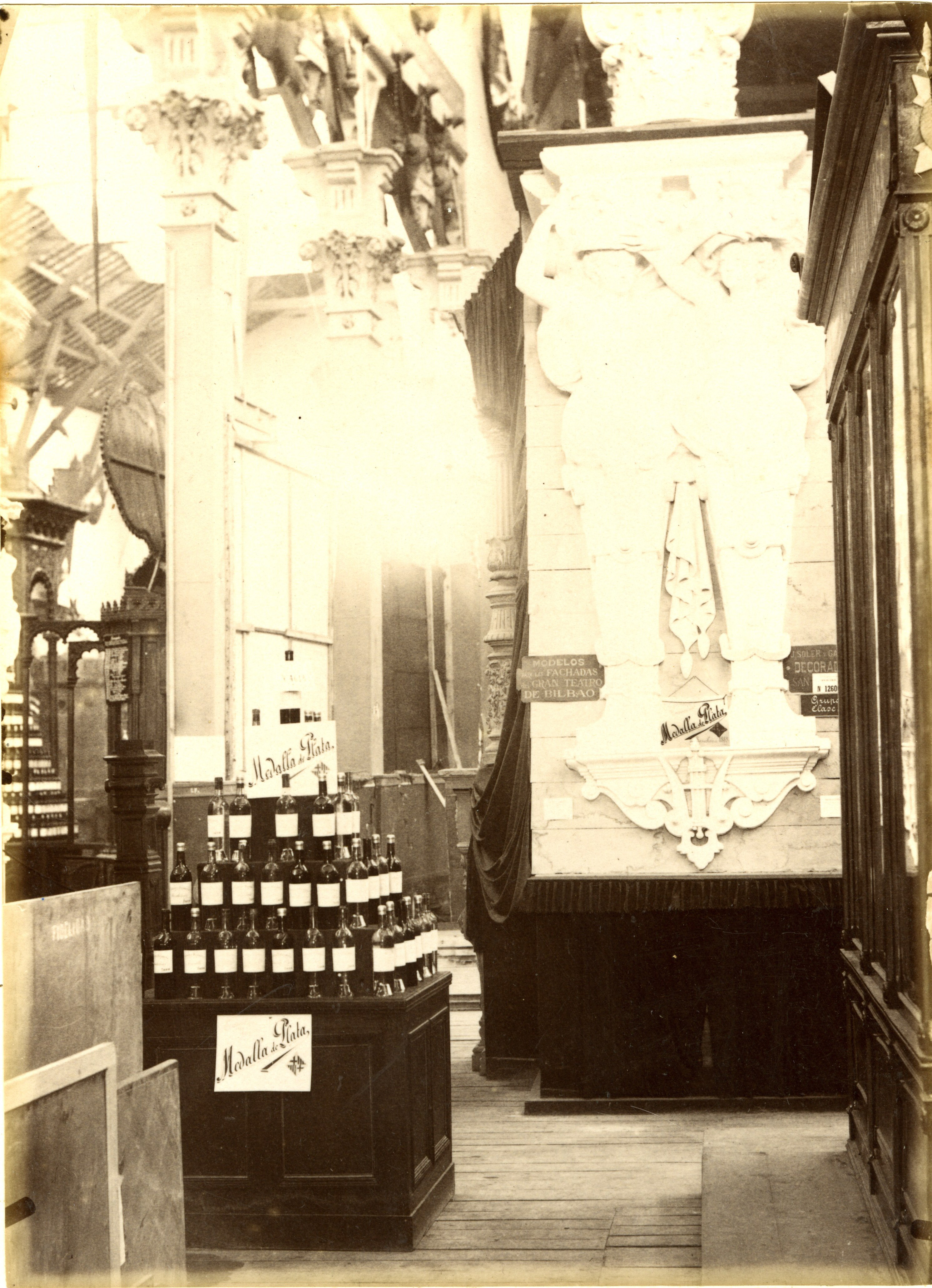 - Instalación núm. 45. Don Teodoro Picabea, fabricante de licores, en Irún, presenta sobre una mesa, una pirámide fornada de cuatro gradas cuadrangulares, ocupadas por botellas que contienen los licores que elabora.