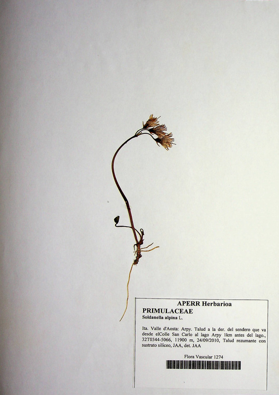 - ES Localización: Arpy. Talud a la derecha del sendero que va desde el Colle San Carlo al lago Arpy 1km antes del lago. Habitat: Talud rezumante con sustrato siliceo