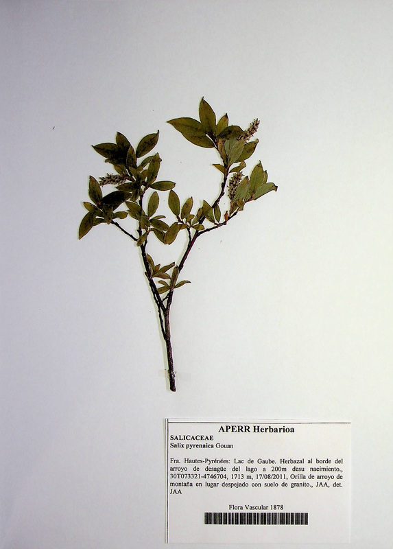 Este arbusto que por sus dimensiones no alcanza ni la categoría de mata, pues en ocasiones no pasa de los 15cm y como máximo no sobrepasa los 50cm, es endémico de esa cordillera. Vive en el piso alpino por encima de los 1500m, llegando en ocasiones hasta los 2500m. A esas altitudes, el período de actividad del arbusto se reduce considerablemente, pues buena parte del año la pasa aplastado bajo una pesada capa de nieve que puede durar 6 meses. Su minúscula talla responde a necesidades de supervivencia sujeto a esas duras condiciones que impone el medio. Si hurgamos en la etiqueta de la muestra del herbario, (la etiqueta es una especie de DNI donde figuran todos los datos disponibles de las plantas), la fecha de recolección fue el 17 de agosto de 2011 y si observamos la muestra veremos que se encontraba en plena floración, una fecha muy tardía si la comparamos con los sauces de bajas altitudes que son los primeros arbustos en florecer ya a comienzos de marzo. Por otra parte, estas flores nos informan de que se trata de un ejemplar femenino, pues los sauces son dioicos, es decir que hay ejemplares o pies machos, y otros hembras, y cada uno de ellos dispone de flores según su género. Esta circunstancia complica más aún la ya difícil reproducción en estos hábitats pues los sauces necesitan del polen de los pies machos y la colaboración obligada de las abejas polinizadoras, aunque parece que el viento puede también contribuir a su polinización.