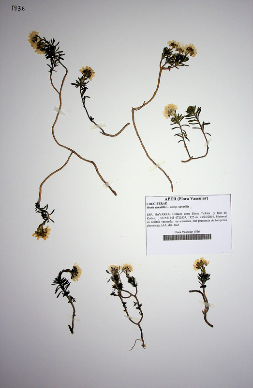 - ES Localización: Genevilla. Rellano en el collado cercano a Peña Humada llegando de Sierra Txikita. Habitat: Matorral en collado venteado, en areniscas, con presencia de Juniperus phoenicea