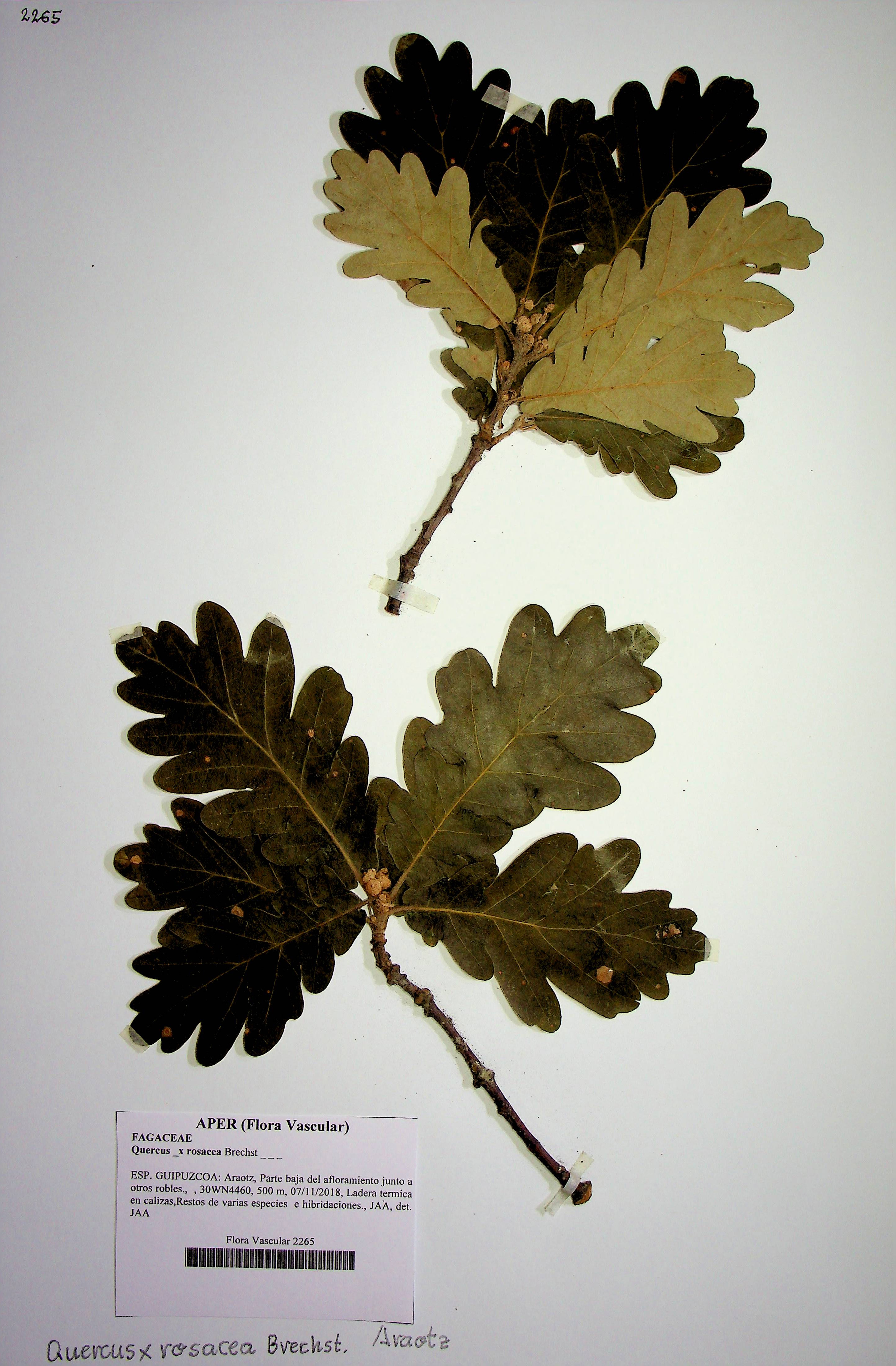 - ES Localización: Araotz. Parte baja del afloramiento junto a otros robles. Habitat: Ladera termica en calizas,Restos de varias especies e hibridaciones.