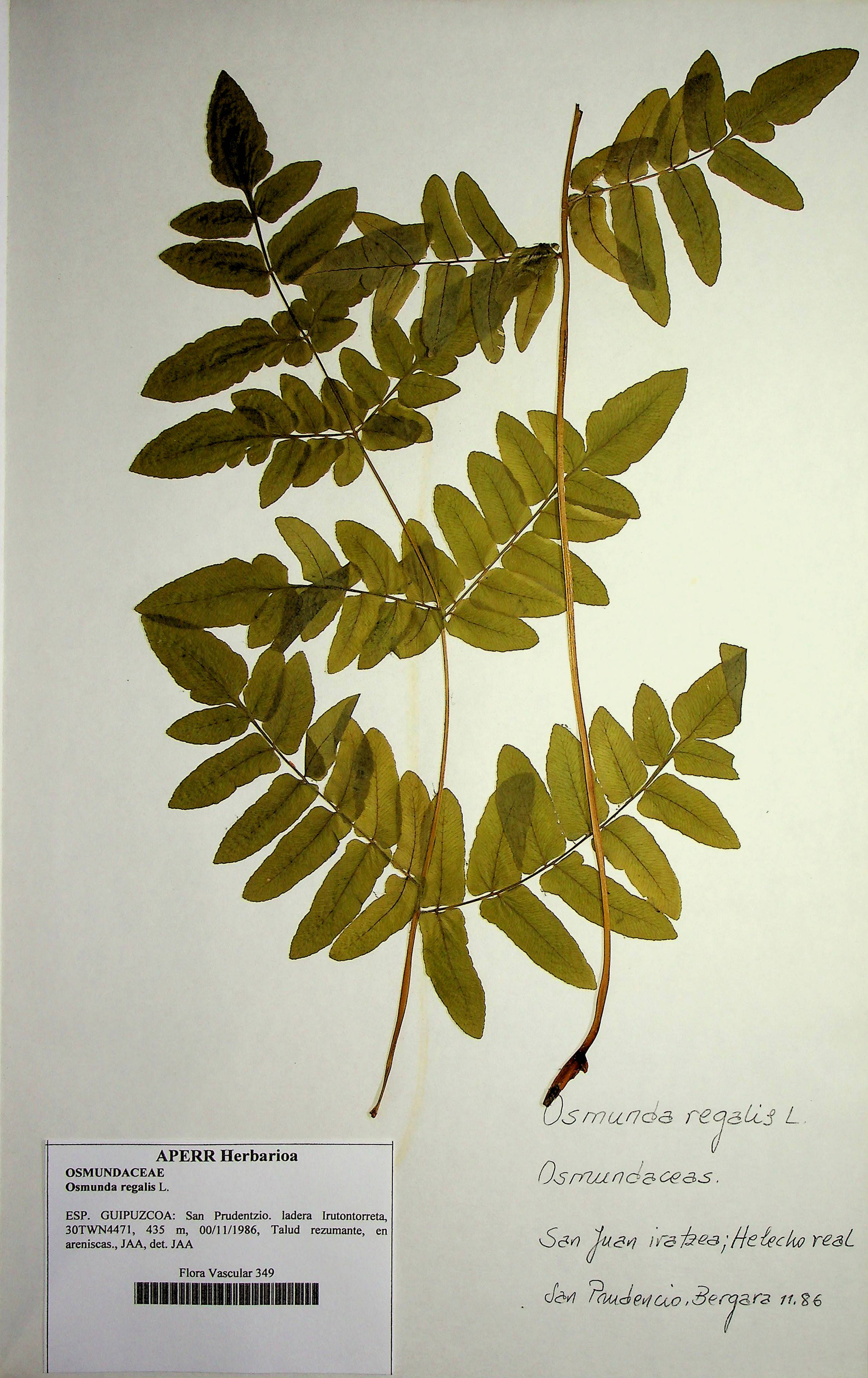 El helecho real (regalis) se denomina así por el gran tamaño que pueden adquirir sus frondes pudiendo superar los 2,5m de altura. Crece en lugares pantanosos, bosques húmedos y en suelos ácidos con presencia de humedad. Se distribuye por toda Europa y es relativamente frecuente en la mitad norte de la Península Ibérica.