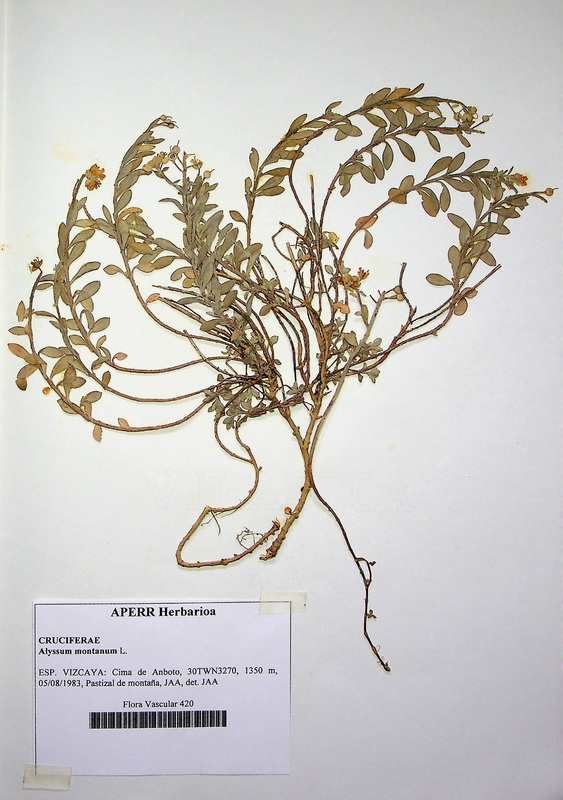 El género Alyssum ocupa todos los medios desde cimas de montañas calizas con altas precipitaciones, como la icónica cima de Anboto donde hemos recolectado este ejemplar, hasta las dunas litorales silíceas, pasando por los soleados y secos arenales del Valle del Ebro.