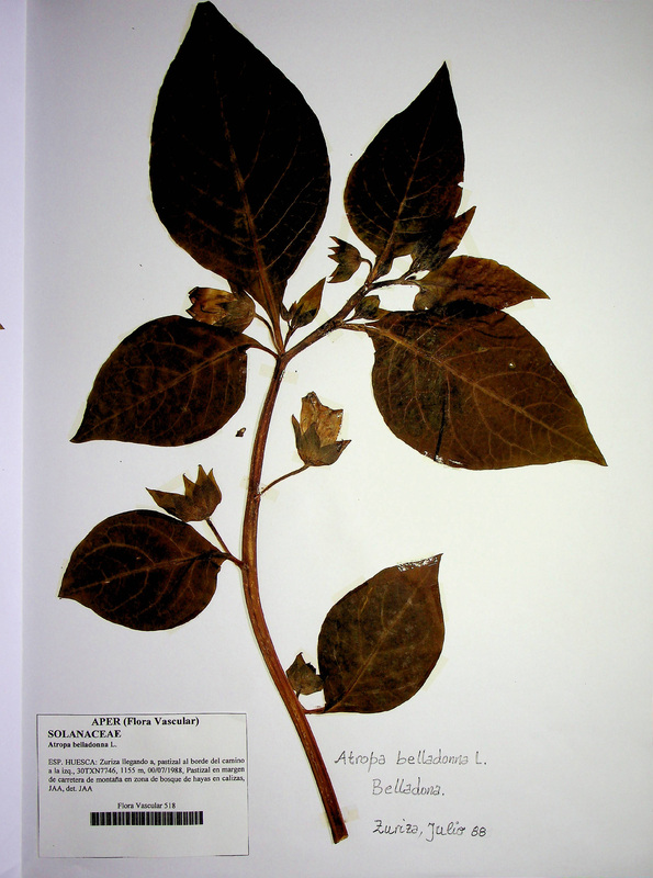 Prima hermana de la anterior pertenece a la “tenebrosa” familia de las solanáceas. Posee un fuerte olor desagradable y toda ella es venenosa, pero es en sus frutos negros donde se concentran las sustancias más tóxicas. Contiene sobre todo alcaloides como hiosciamina y atropina que también son muy utilizados en medicina clínica.