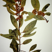 Esta muestra del herbario fue recolectada de un enorme y vetusto ejemplar que preside una plaza de la población gipuzkoana de Mendaro, junto al río Deba. En el mundo clásico dedicaron el laurel al dios Apolo, que era símbolo de prestigio y gloria. Con laurel se coronaban los emperadores romanos y se galardonaba a los atletas vencedores en el circo. Del nombre este árbol deriva el adjetivo “laureado” que se emplea para referirse al premiado, agasajado, condecorado o al vencedor en alguna disciplina.