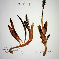 Aun sin ser tan exuberantes y vistosas como las que podemos encontrar en las selvas tropicales, en nuestros territorios también podemos encontrar orquídeas de una belleza más discreta, pero no menos bellas. Esta especie del herbario no es muy frecuente y fue hallada en Orkatzategi, Oñati. Su nombre vulgar, hombrecillos ahorcados, alude a la forma que adopta la división del labelo de su flor que se asemeja a un hombre ahorcado.