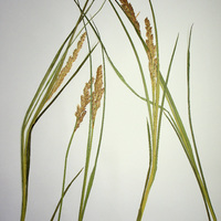 Esta especie y otras parecidas vistas en el campo pasan en general equivocadas por una gramínea, cuando en realidad salvo su aspecto externo, tiene poco que ver con ellas. Además de sus tallos y hojas, sus órganos de reproducción, sobre todo el femenino son totalmente distintos a los de las gramíneas. Pertenece a la familia de las Ciperáceas, una amplísima familia a la que se le adjudica al menos más de 100 géneros y 4000 especies a nivel mundial. A decir de los especialistas en las cárices, la plasticidad morfológica y la frecuente hibridación de las especies del género Carex, hacen extremadamente compleja su determinación que obliga a una constante revisión. No siendo suficiente el estudio de su morfología, en la actualidad están en curso estudios de filogenia molecular que hagan luz en la identificación de las diversas divisiones infraespecíficas del género. Las cárices, ocupan todos los medios y están ampliamente repartidas por todo el globo. La especie que mostramos del herbario, la recolectamos en Bergara, en un herbazal ruderalizado, que de no conocerla, pasará inadvertidamente como una gramínea más.