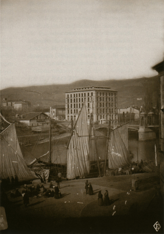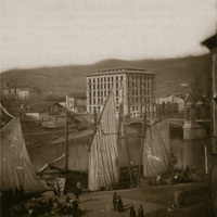 - ES Muelle de Arriaga, puente de Isabel II, y Casa de Mazas en construcción en Abando (1859)