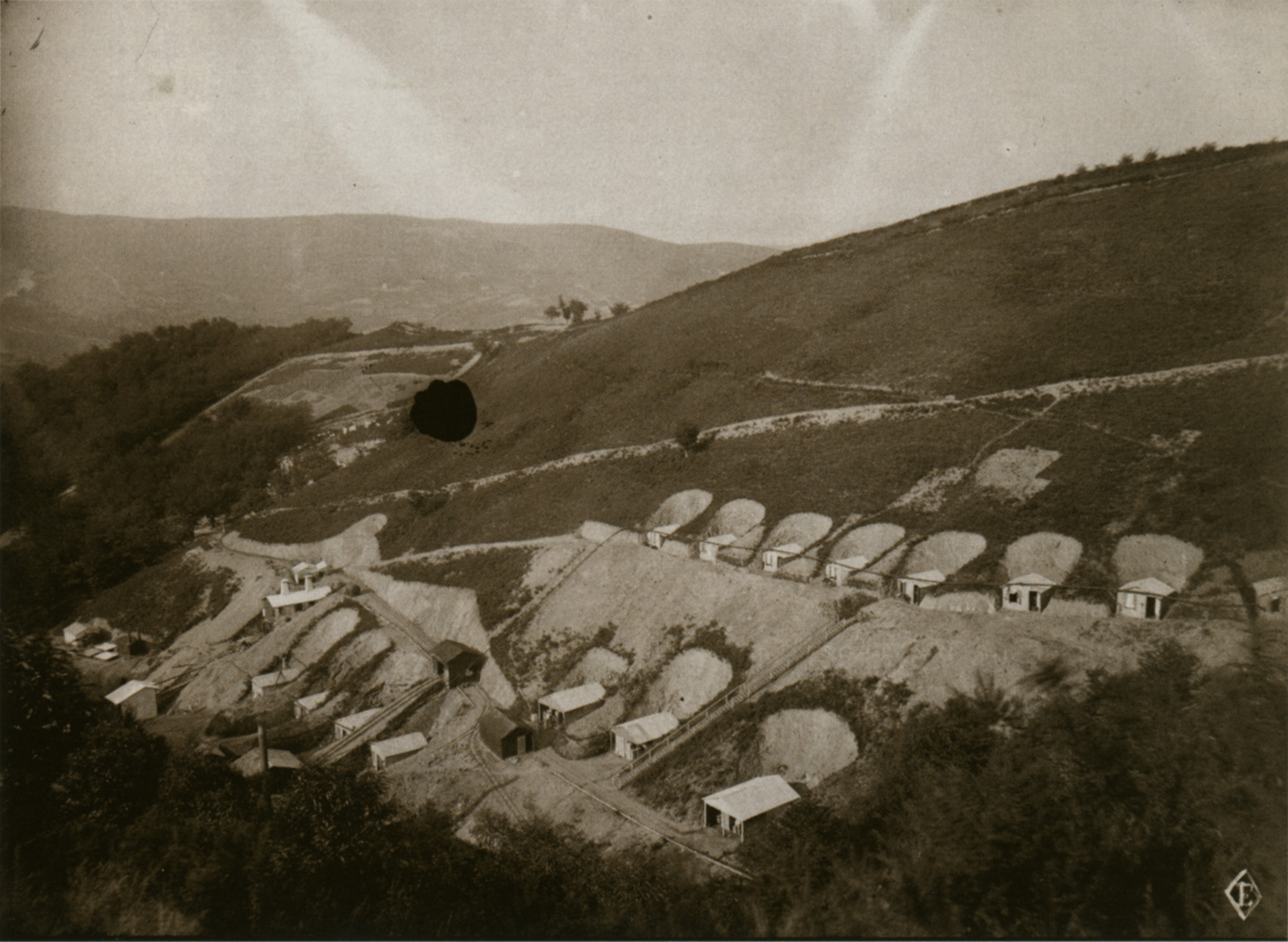- ES Primeras instalaciones de la fábrica de La Dinamita en la ladera sur del monte Santa Marina.