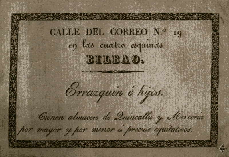 - ES Tarjeta publicitaria de Errazquin e hijos, en la calle del Correo nº 19.