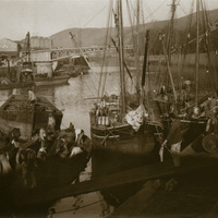 - ES Descarga de carbón en el muelle de La Sendeja, hacia 1893. Con destino a la fábrica de gas.