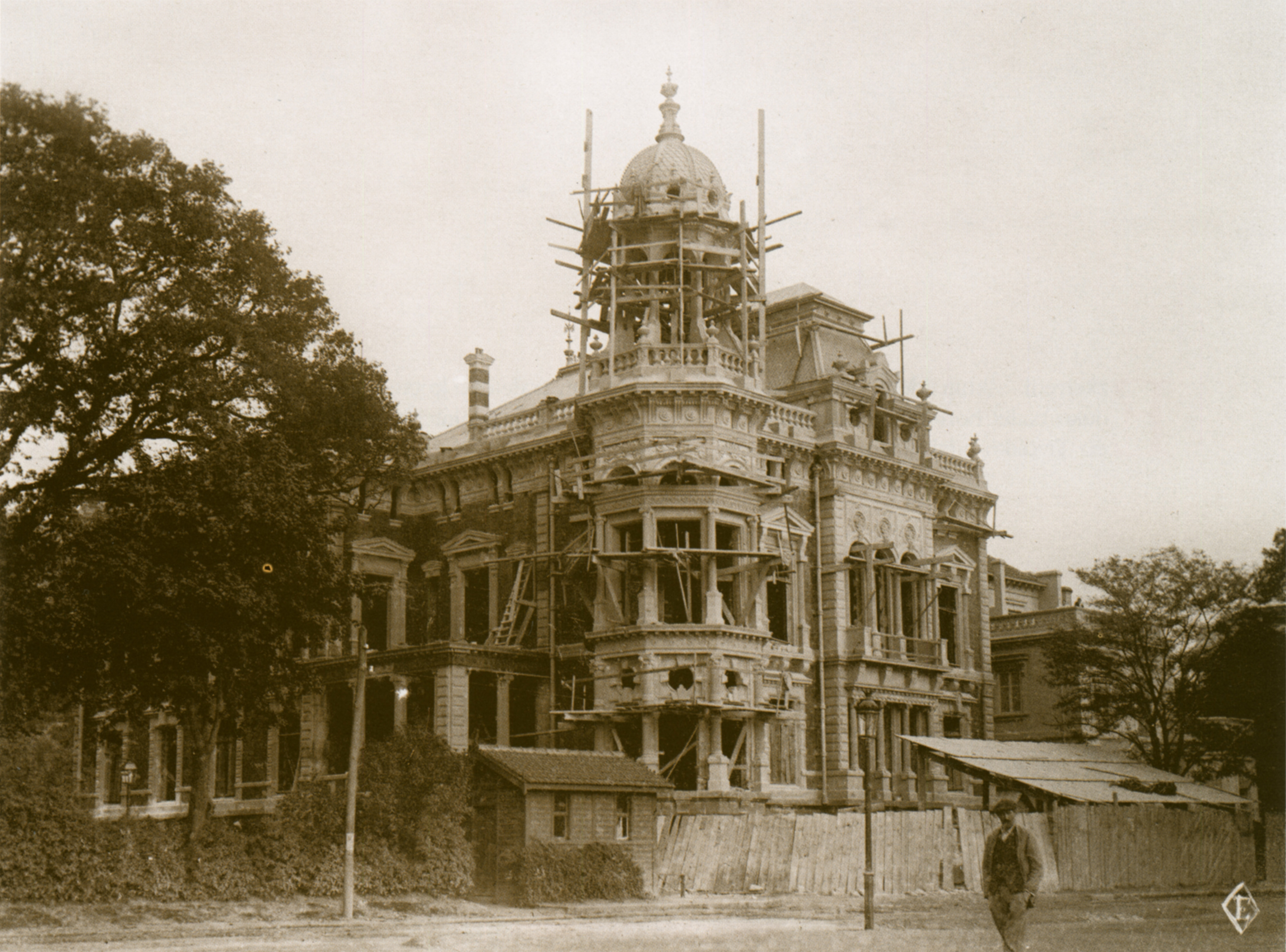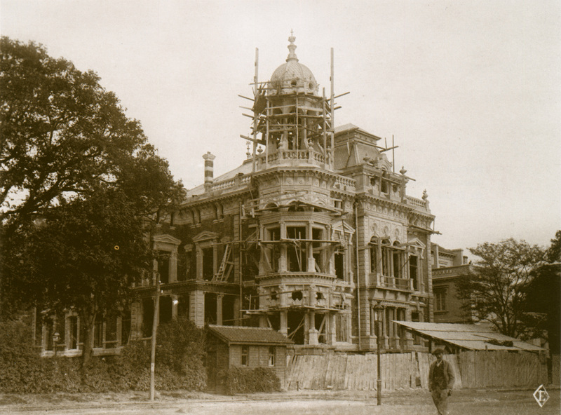 Villa Olabarri en construcción. En Campo Volantín, número 41 de entonces. Obra del arquitecto Julián Zubizarreta, construido entre 1890 y 1894. Fué sede de la Autoridad Portuaria.