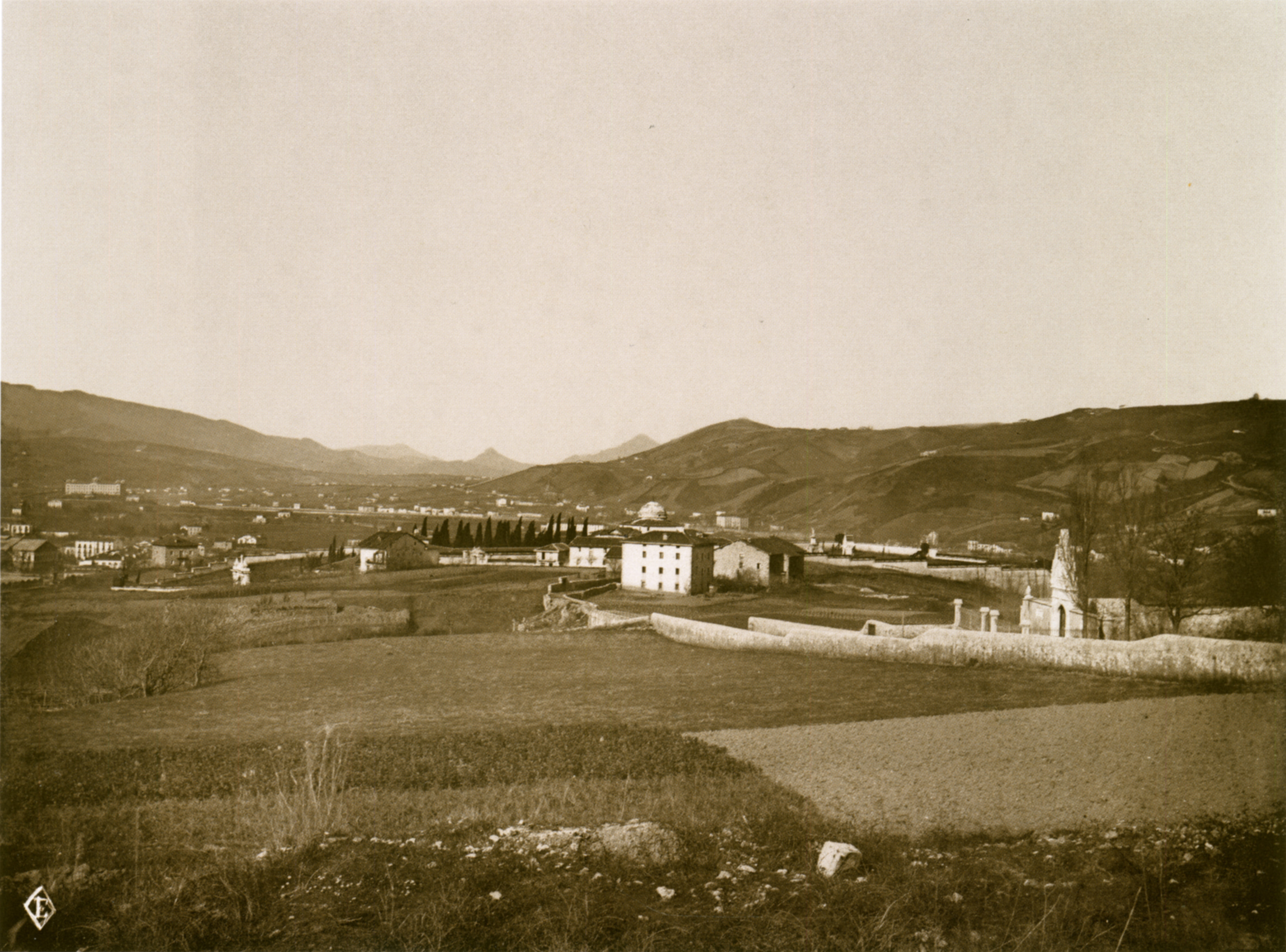 - ES Cementerio de Begoña, hacia 1874. Sigue hoy en día en la calle Virgen de Begoña. Más al fondo el cementerio de Mallona (1828-1927)