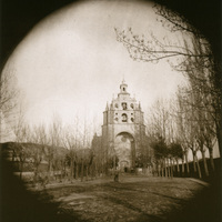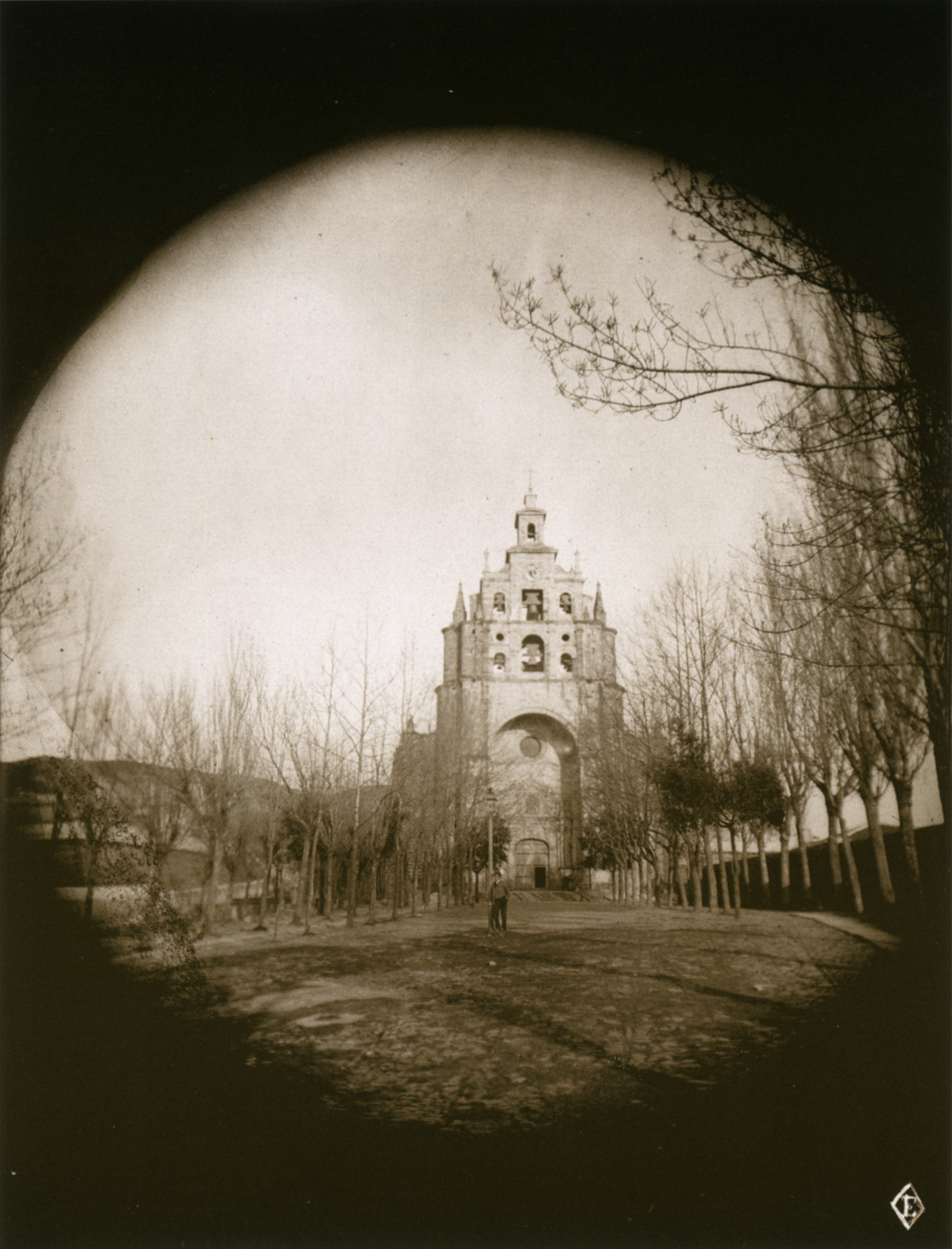 Portada de la Basílica de Begoña antes de 1874. Había sido reconstruida en 1852 por el arquitecto Antonio Carmona, de los daños sufridos en 1835 durente la primera guerra carlista.