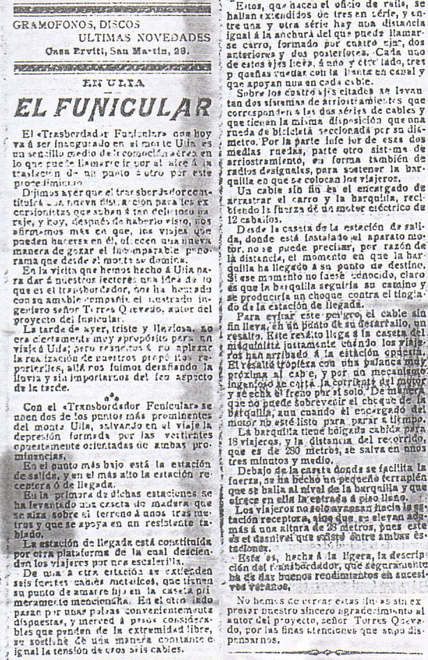 - ES 30 de septiembre de 1907 "Inauguración del teleférico a Monte Ulía"