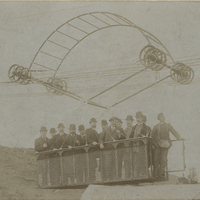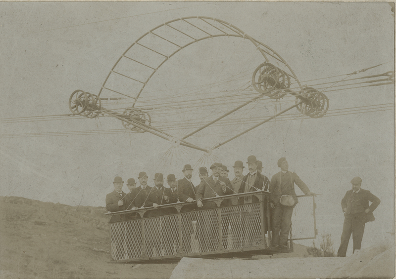 30 de septiembre de 1907 "Inauguración del teleférico a Monte Ulía, con boina Usobiaga, con abrigo claro Juan Córdoba Picavea, a la derecha de Usobiaga. Sebastián Machimbarrena Irure Espoz y Mina"