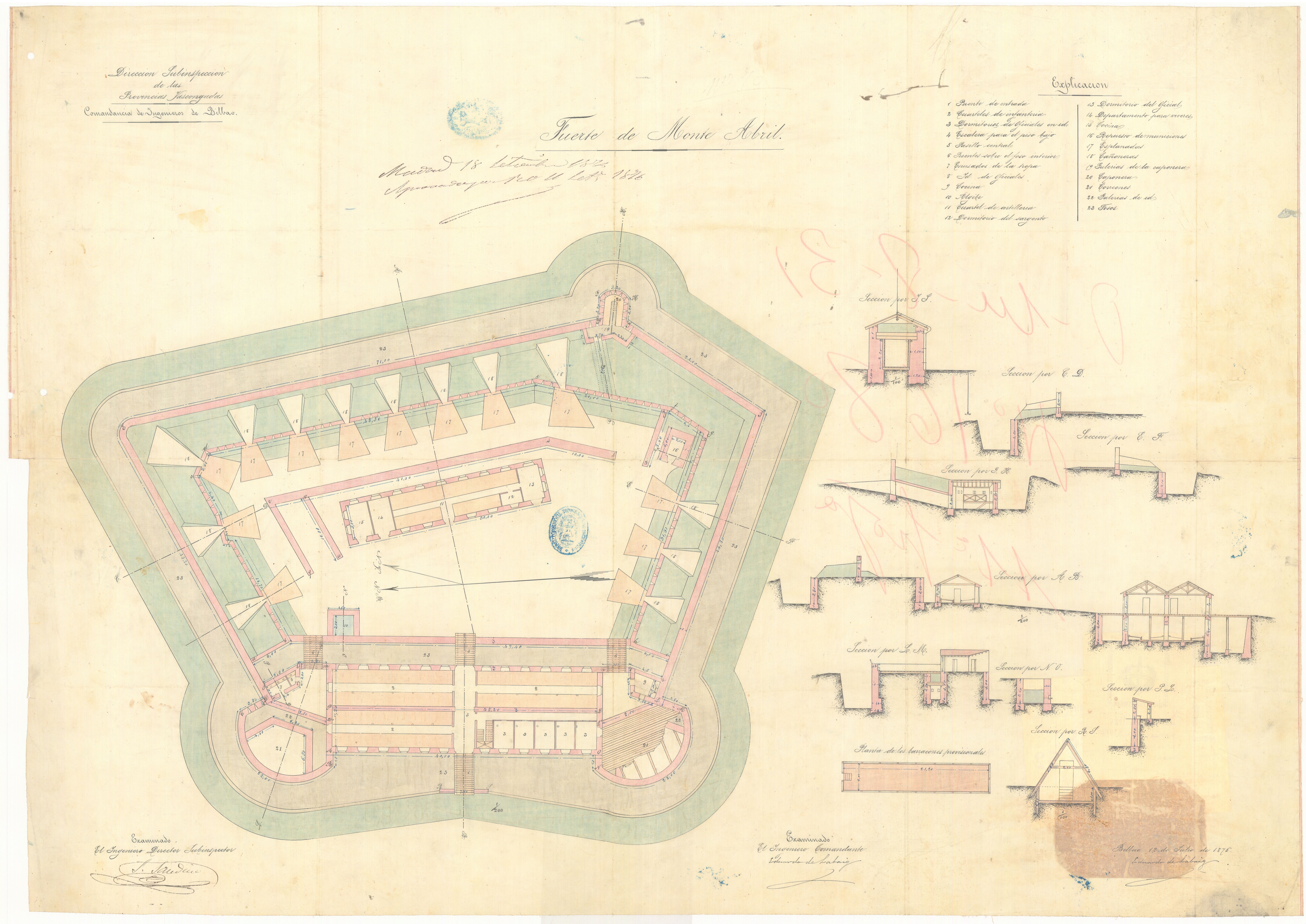 Orientado con flecha, N. al O. y N. magnético. Manuscrito firmado, rubricado y fechado en Bilbao. 'Examinado El Ingeniero Director Subinspector S. Saudino'. Figura en el margen superior: 'Madrid 18 del actual de 1876. Aprobado por R.O. de Sete. 1876'.