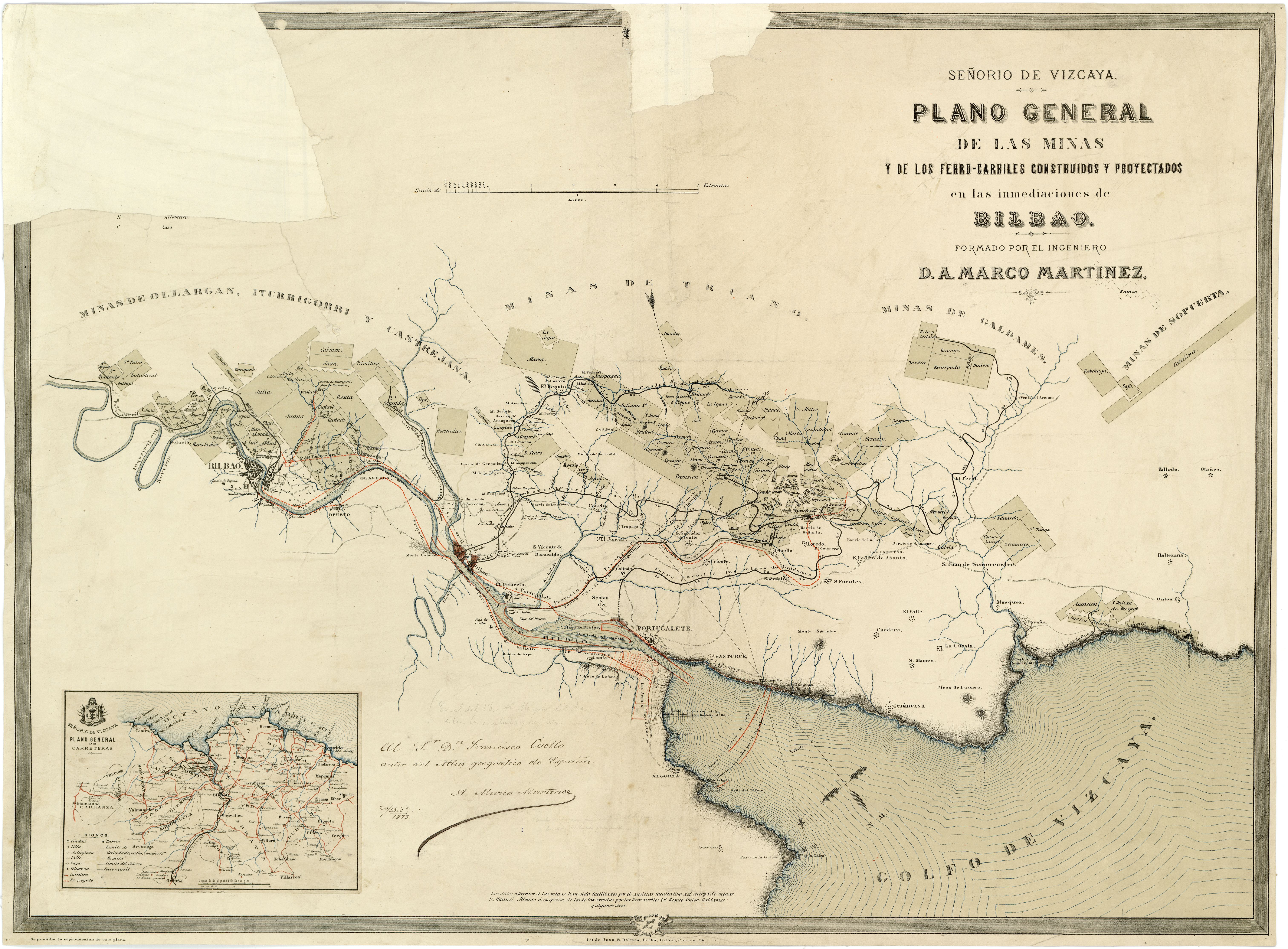 Plano general de las minas y de los ferro-carriles construidos y proyectados en las inmediaciones de Bilbao