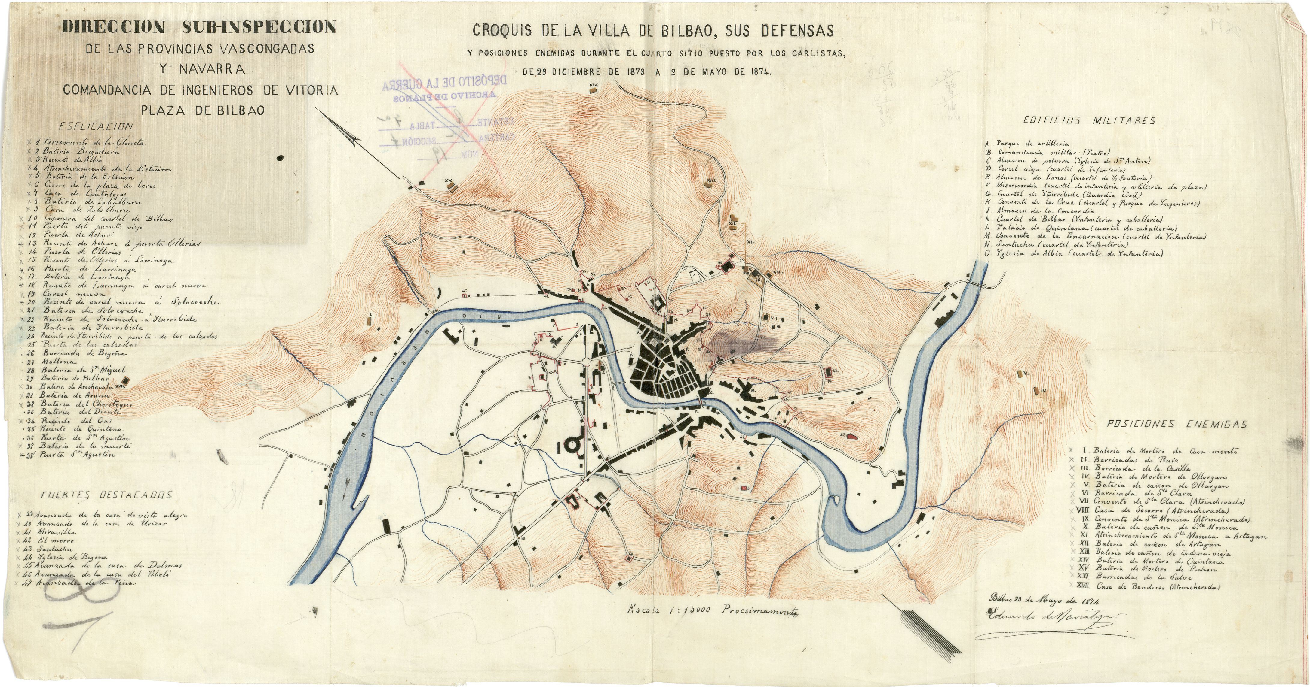 Croquis de la Villa de Bilbao, sus defensas y posiciones enemigas durante el cuarto sitio puesto por los carlistas, de 29 Diciembre de 1873 a 2 de mayo de 1874