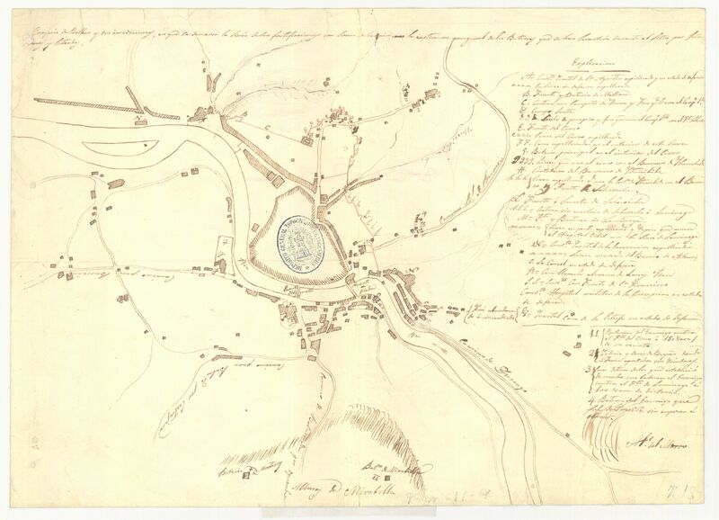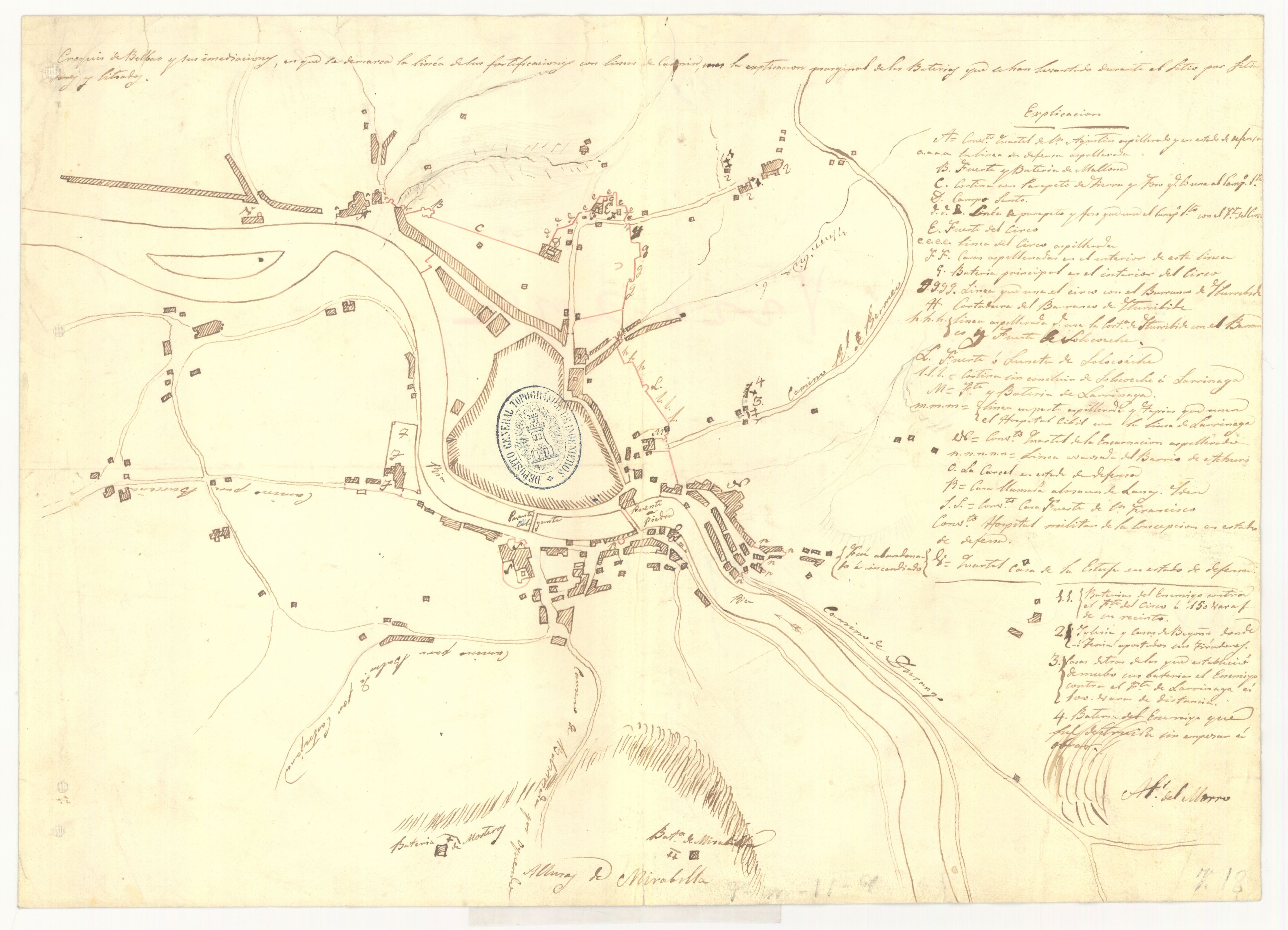 Croquis de Bilbao y sus inmediaciones, en que se demarca la linea de las fortificaciones con lineas de carmín