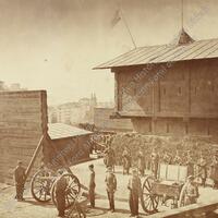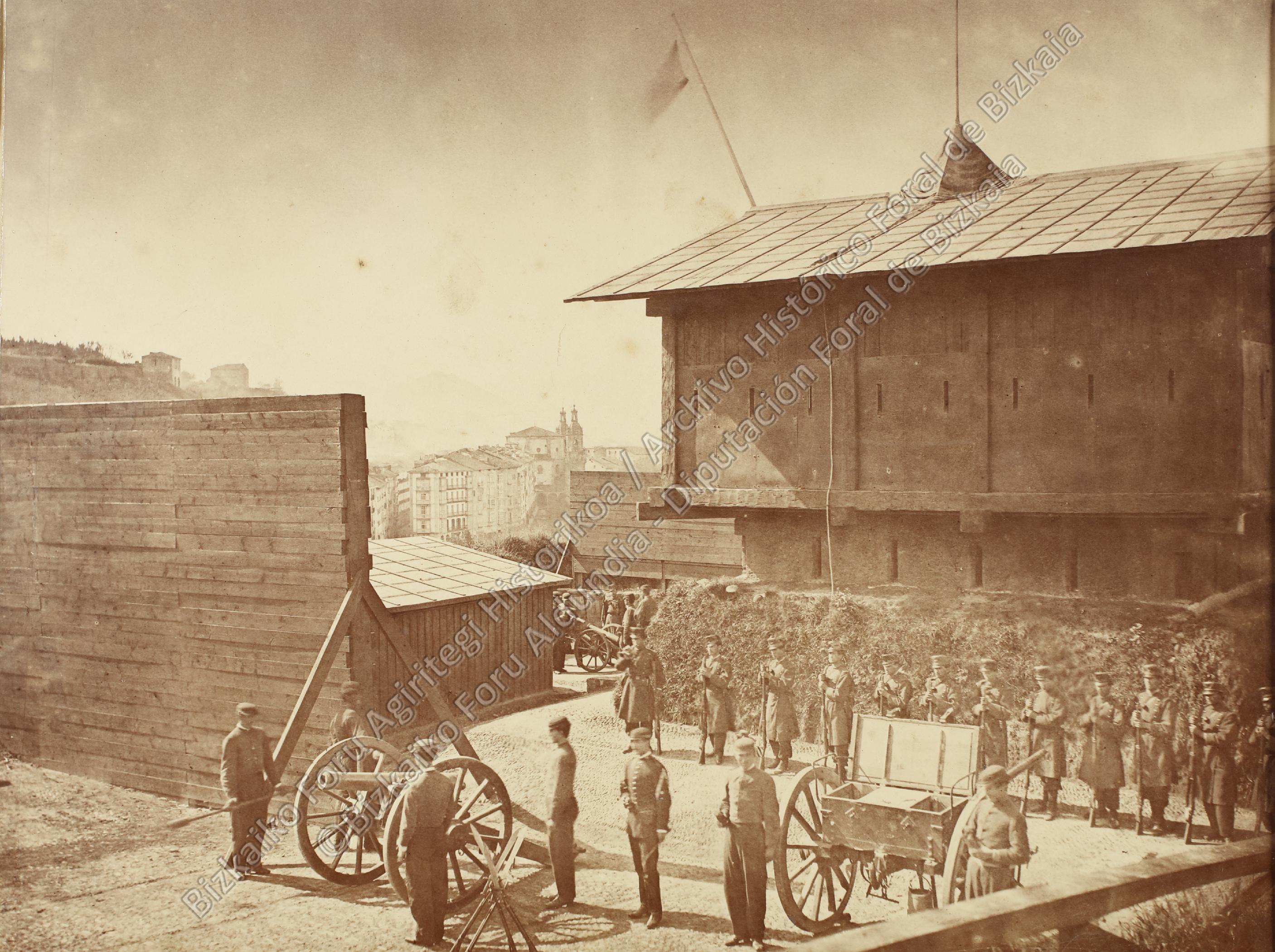 - ES Toma parcial del interior del fuerte de San Agustín con el armamento y los soldados preparados para el combate, durante El Sitio carlista de Bilbao en 1874.