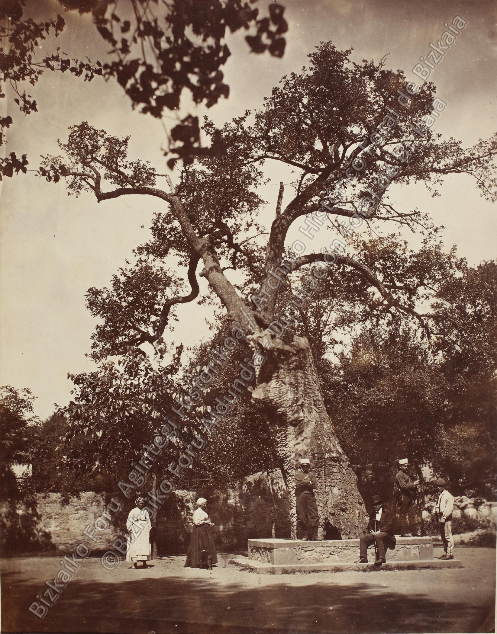 Toma general del Árbol Gordo, también conocido por Árbol de Arbieto, en Albia, anteiglesia de Abando. Junto a él, dos soldados liberales, dos mujeres y dos civiles, durante El Sitio carlista de Bilbao en 1874.