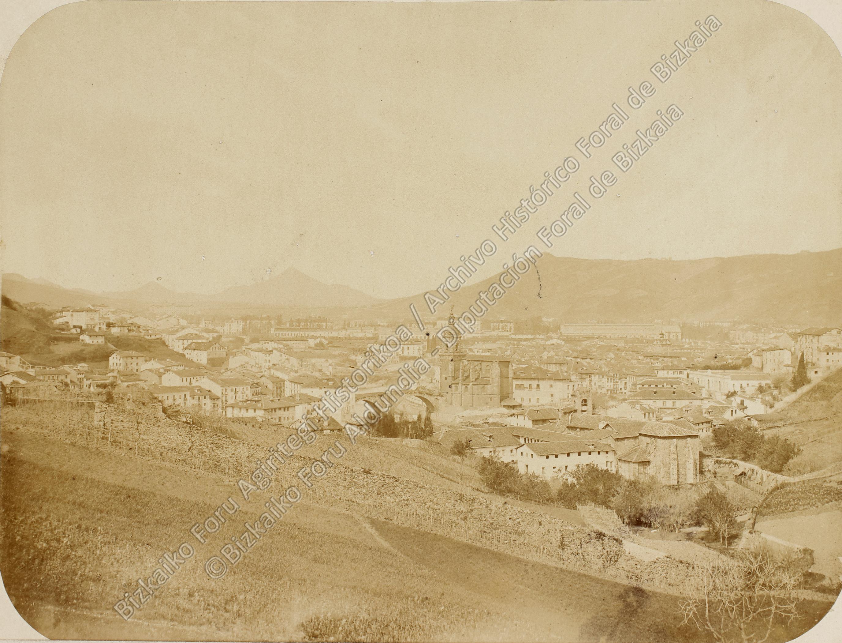 - ES Toma general de Bilbao desde una zona alta de Bilbao la Vieja, en la que en primer plano aparece el barrio de San Francisco, iglesia y puente de San Antón.