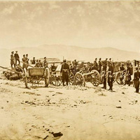 - ES Tres cañones ligeros y carros de transporte de municiones. Más de 40 militares