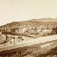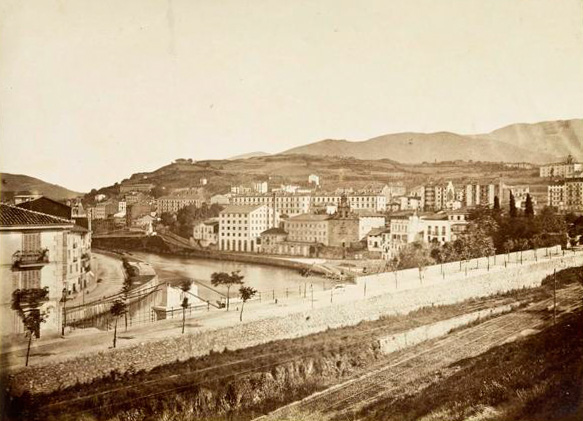 - ES Dos puentes colgantes sobre el Nervión; muelle de la Merced; iglesia de la Merced