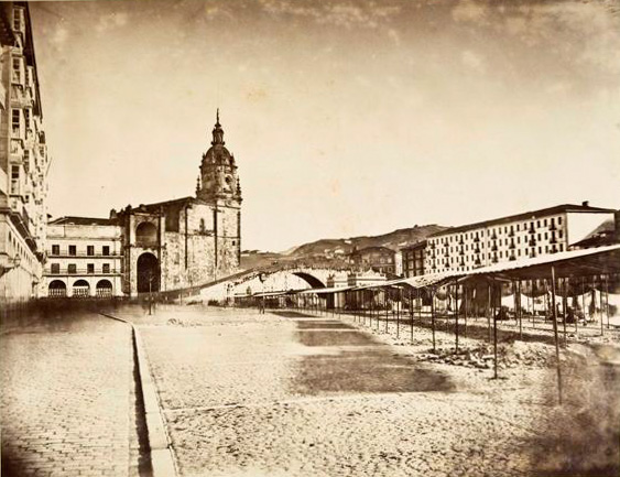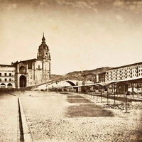 - ES Antigua Plaza Vieja o Mayor, luego Mercado de la Ribera; puente antiguo de San Antón; campanario barroco de la iglesia