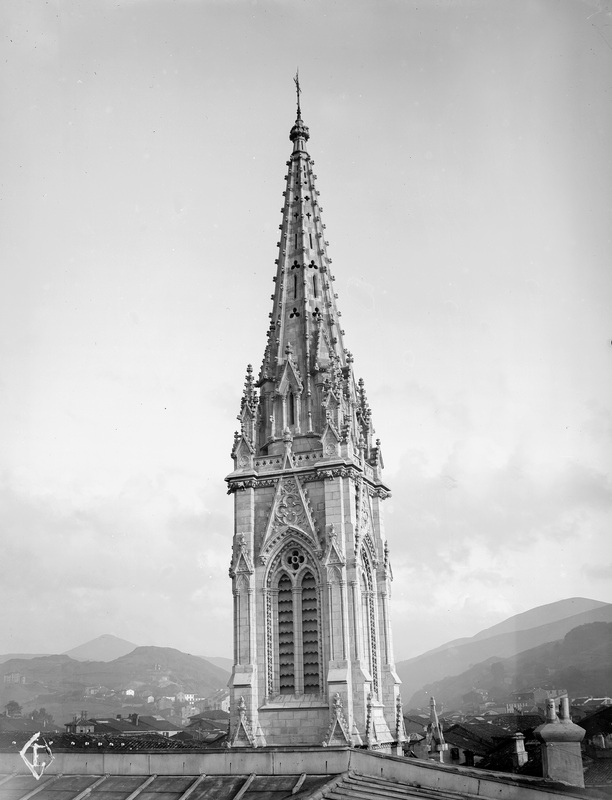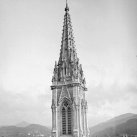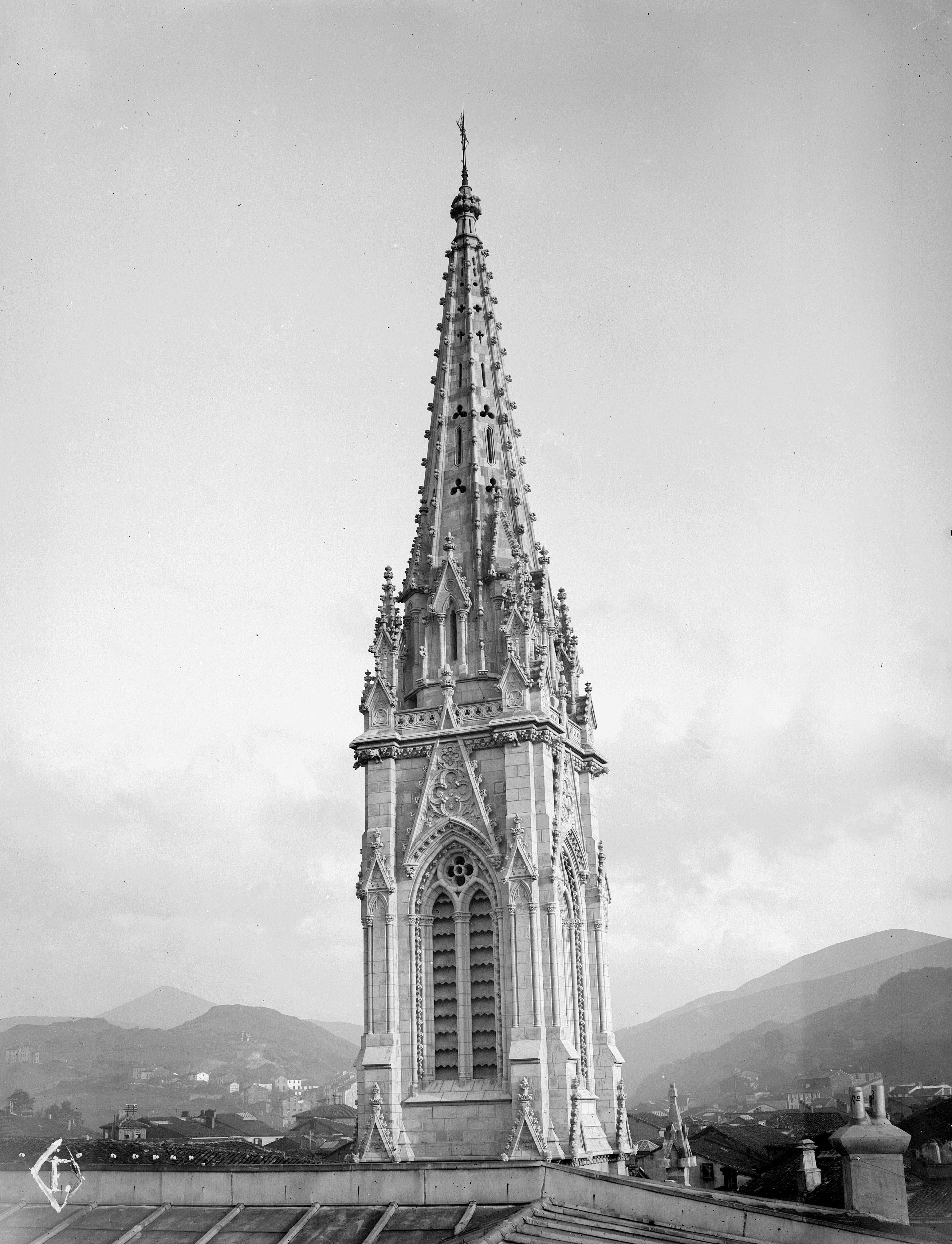 Post. 1890 Vista general de la nueva torre de la catedral de Santiago, obra de Severino Churruca inaugurada en 1890