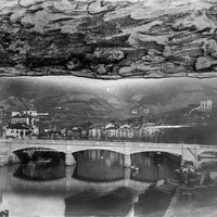 Post. 1878 Vista desde el muelle de La Ribera donde se aprecia el puente del Arenal, que sustituyó al de Isabel II. Este fue obra de Adolfo Ibarreta (Bayona 1829 - Madrid 1893), levantado hacia 1880. Ibarreta fue director gerente de la Cia de ferrocarril Bilbao-Tudela y asistió como delegado del gobierno a la inauguración del Canal de Suez. Casó con Isabel de Uhagon, padres de Enrique, el explorador.