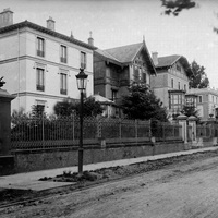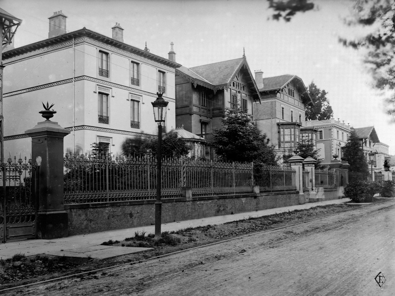 1880 - 1895 Numeramos las casas de derecha a izquierda: 1- Antiguo nº 31 (hoy 27). 2- Antiguo nº 32 (hoy 28). Entre ambas, actual calle Fontecha y Salazar. 3- Antiguo nº 33 (hoy 29). Construida por Juan Mª de Ybarra y Cabiedes para su hijo Jose Antonio Ybarra Arregui. 4- Antiguo nº 34 (hoy 30). Construida por Gabriel Mª de Ybarra y Cabiedes, hermano del anterior y padre de Rafaela, era propietario de la casa de la Cava, donde murió, cuya ubicación le parecía lejana y por eso pasaba temporadas en esta. 5- Antiguo nº 35 (hoy 31). Construida por Cosme de Zubiria para su hijo Luis Zubiria e Ybarra. 6- Antiguo nº 36 (hoy 32). Construida por Antonio Gonzalez de Careaga, padre del conde de Cadagua. La vende a Gabriel Mª de Ybarra.
