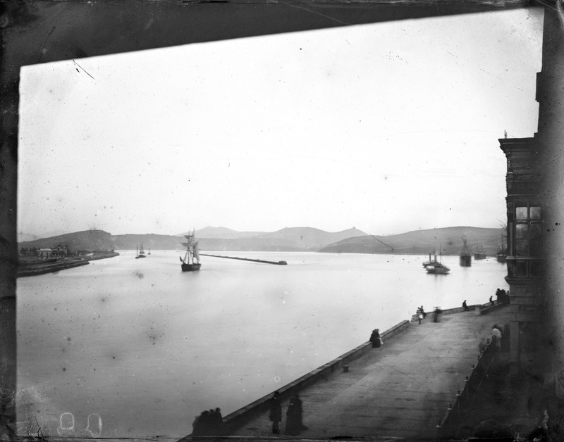 - ES 1880 - 1895 Vista desde el muelle de Portugalete hacia Las Arenas con barcos fondeados.