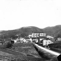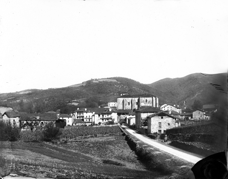 - ES 1860 - 1880 Vista general de San Andrés de Etxebarria tomada desde la carretera procedente de Elgoibar.