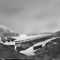 1880 - 1895 Vista general de la ría mostrando Lutxana, Barakaldo y Erandio con barcos a vapor junto a cargadero de mineral. A la derecha la carretera a Las Arenas y la desembocadura del rio Asua. - En ERR-067 toma general. - Es igual que ERR-068 y ERR-154