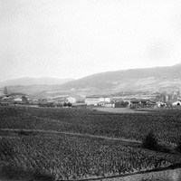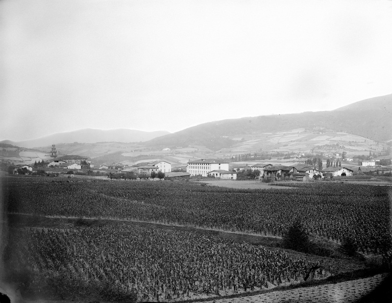 - ES 1880 - 1895. Vista general de la villa de Elorrio destancado en primer término los campos de labranza.