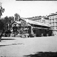c. 1880 Vista general del pabellón mondado a beneficio de la Santa Casa de Misericordia en El Arenal junto al palacio Gomez de la Torre, obra de 1790. Se trata de una tómbola.