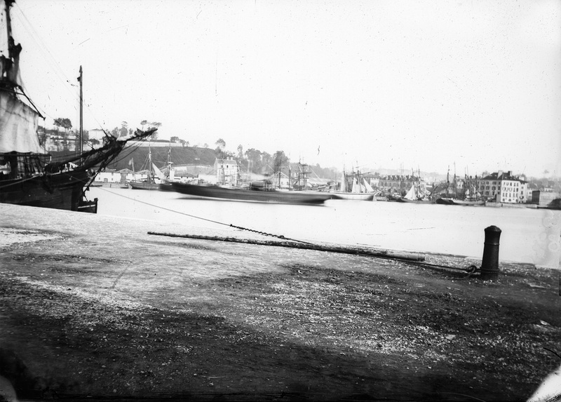 - ES 1880 - 1895 Vista de barcos atracados en Baiona