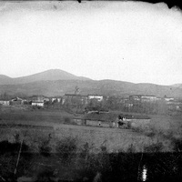 - ES 1880 - 1895. Vista general de la villa de Mungia rodeada de campos de labranza.