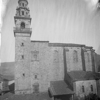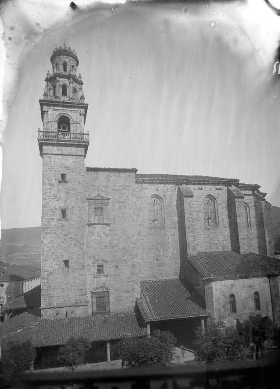 1880 - 1895 Vista parcial donde se muestra una de las fachadas laterales y la torre de la iglesia de la Purisima Concepcióncon los pórticos y capilla adosados.